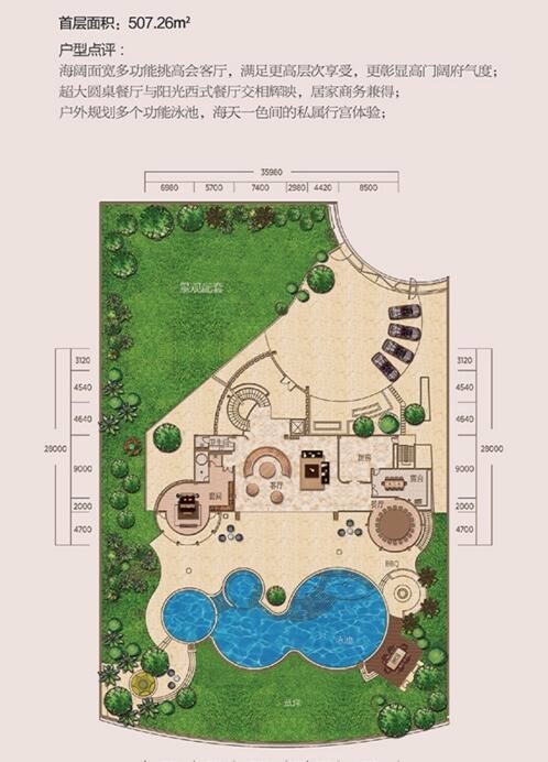 | 物业公司 | 第一太平戴维斯 | 主力户型 | (建筑面积)505㎡(五居)、885㎡(六居) | 停 车 位 | 1:1 |
