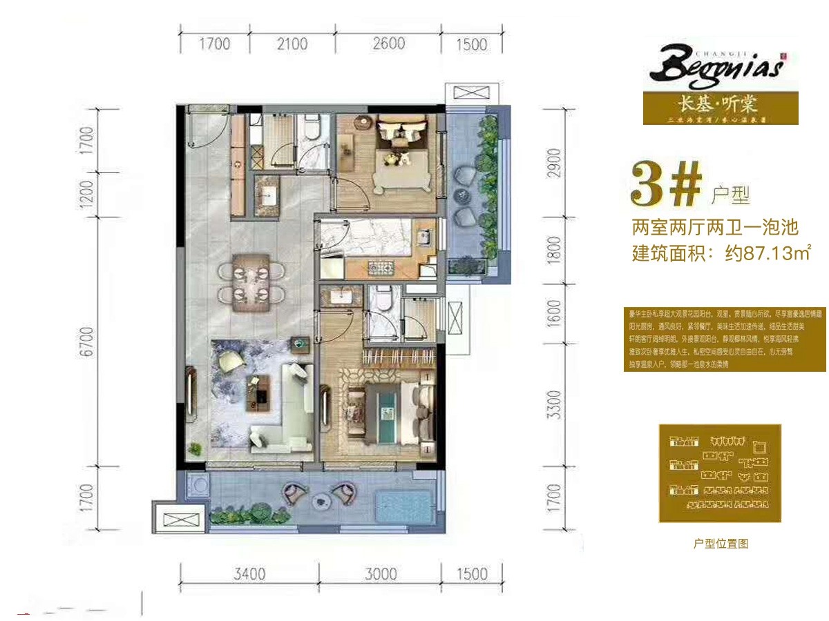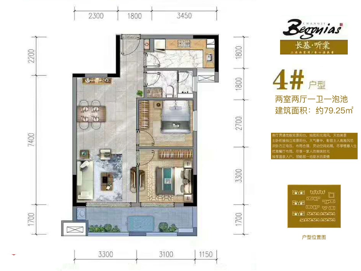 项目定位为中高档度假公寓及住宅小区,力图创造一个富有活力、具有温泉入户理念、具有地域风情的复合型温泉度假住宅小区。主力户型51-294平1居-5居室,70年产权...