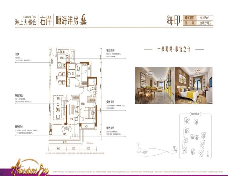 碧桂园·海上大都会右岸目前建面137㎡三房户型在售2022-06-06
