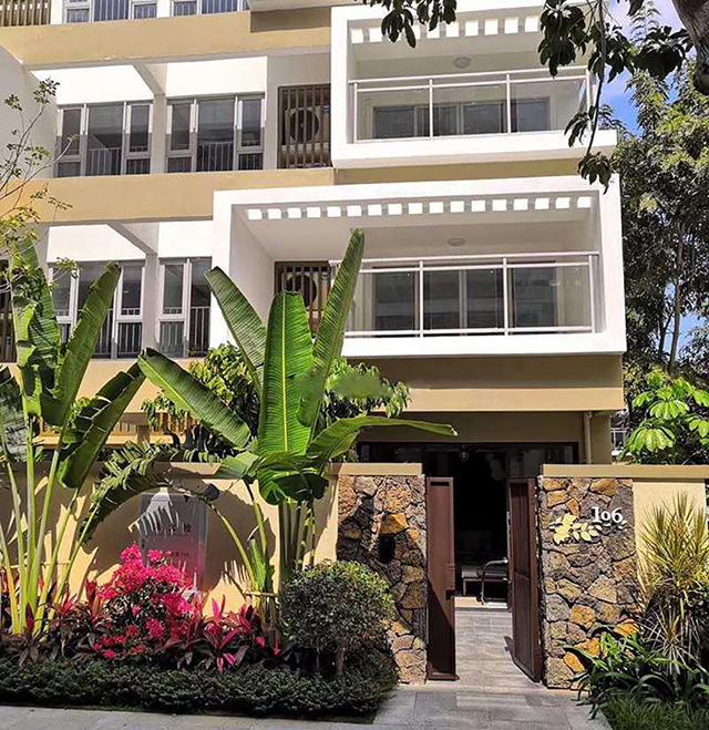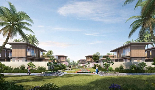 海棠四季项目总占地约64亩,总建筑面积约43000㎡,容积率1,绿化率45%,由两栋小高层酒店和65栋低层酒店组成,项目度假酒店的建筑采用新亚洲风格,项目规划设计上,两栋小高层酒店分布于项目的南侧及西侧,低层酒店分布项目的东北侧,各空间之间互不烦扰,项目北向与东向无任何建筑,充分保证全开阔视野。