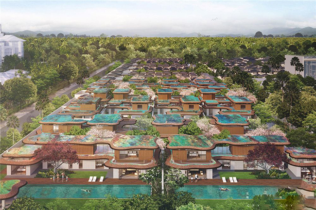 海棠华著项目位于三亚海棠湾海棠北路18号,项目总建筑面积25.8万㎡,容积率0.4,绿化率60%。项目一共分三期开发,一期为174套别墅产品,主力户型建筑面积为300-400㎡的院落别墅。项目以中国传统的合院作为规划设计的主要理念,通过6-10栋别墅组成一个大院子,以适合度假活动的公共空间,营造出和谐高尚的社区文化氛围。别墅户型均为全套房。整个一期交通动线采用人车分流的形式。一期别墅区一共停车位300个,均为地下停车;别墅均配有私人停车位,剩余车位均匀布置在公共车库。