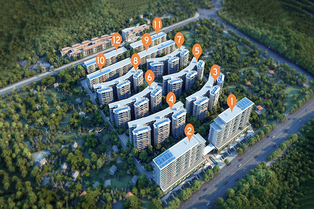 项目总占地6.3万平方米,总建筑面积12万平方米,容积率1.8,绿地率为20%-30%,南北两区共14栋建筑,其中包括1栋综合楼和1栋3层精品城市度假公寓与12栋纯住宅组成,总户数为1138户。纯板式结构,全明户型,南北通透,主推81-106㎡舒适两房与经济三房,空间灵活多变,6.5米观景阳台,视野景观好,舒适的居家体验。