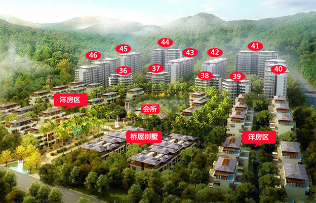 陶然湾项目位于海棠湾镇南田温泉旅游度假区内。项目总占地150亩,建筑面积约16万㎡,分三期开发,由13栋温泉洋房、26栋叠拼别墅及4栋桥屋别墅组成。一期现房为38#-43#的温泉洋房和2#-4#、12#-21#叠拼别墅以及4栋16套桥屋别墅,二期准现房(今年底交房)44#-46#的温泉洋房,三期下半年将开工。项目规划尊重原生地貌,随形就势布局,依山纳水入户,可远观海景、近观山景、玩赏水景,一户一视界。